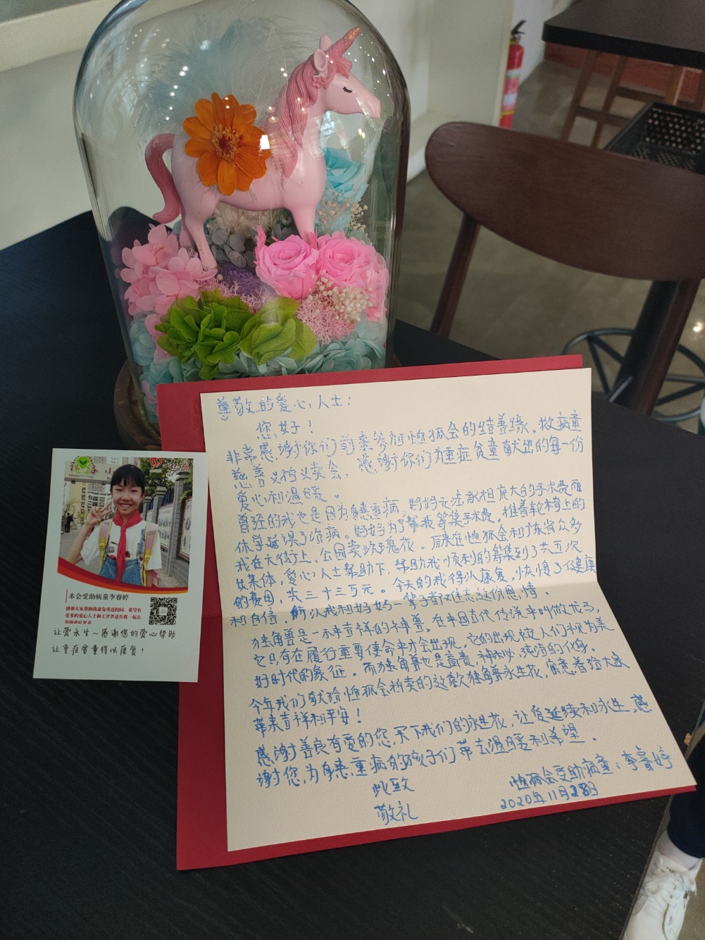 这次的义拍为重症贫童筹得善款共计103.24万,为明年的“重症贫童救助”项目募集到善款397.86万元。据统计,恤孤助学会从2012年开展重症贫童救助项目至2020年10月31日,共发放救助款4301.11万元,给2931名重症病童带去生存的希望。