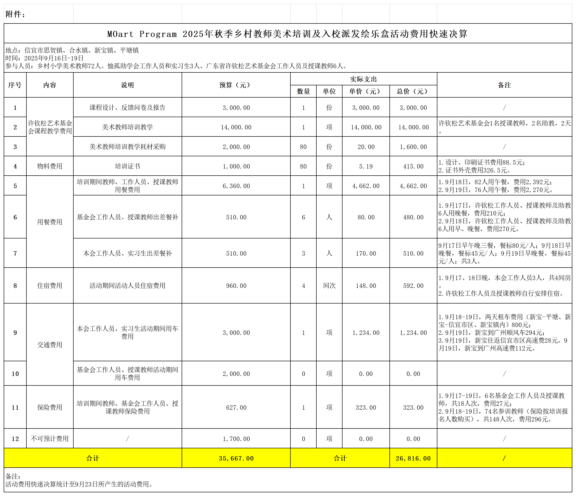 附件:《MOart Program 2025年秋季乡村教师美术培训及入校派发绘乐盒活动费用快速决算》
