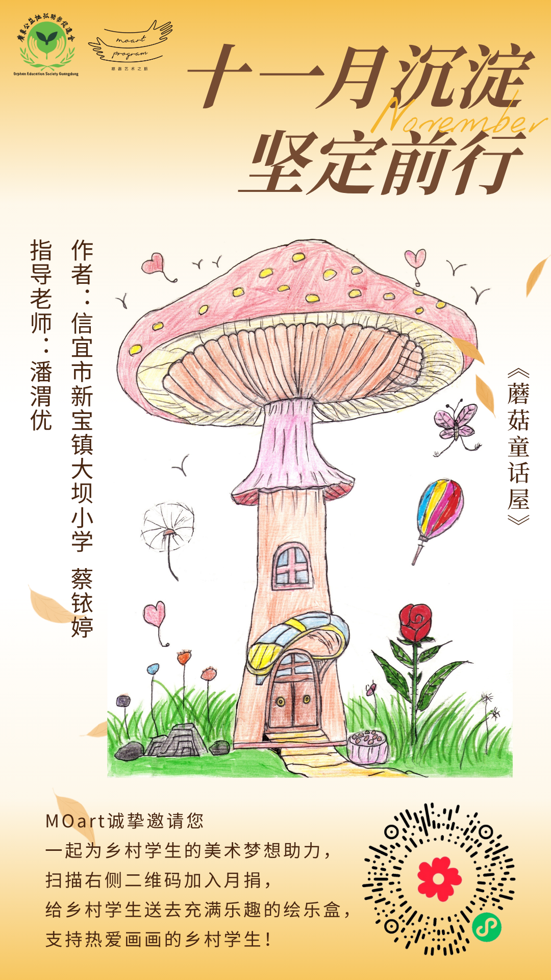本月月签画作选自MOart Program 2025年主题作品选优秀作品——《蘑菇童话屋》。