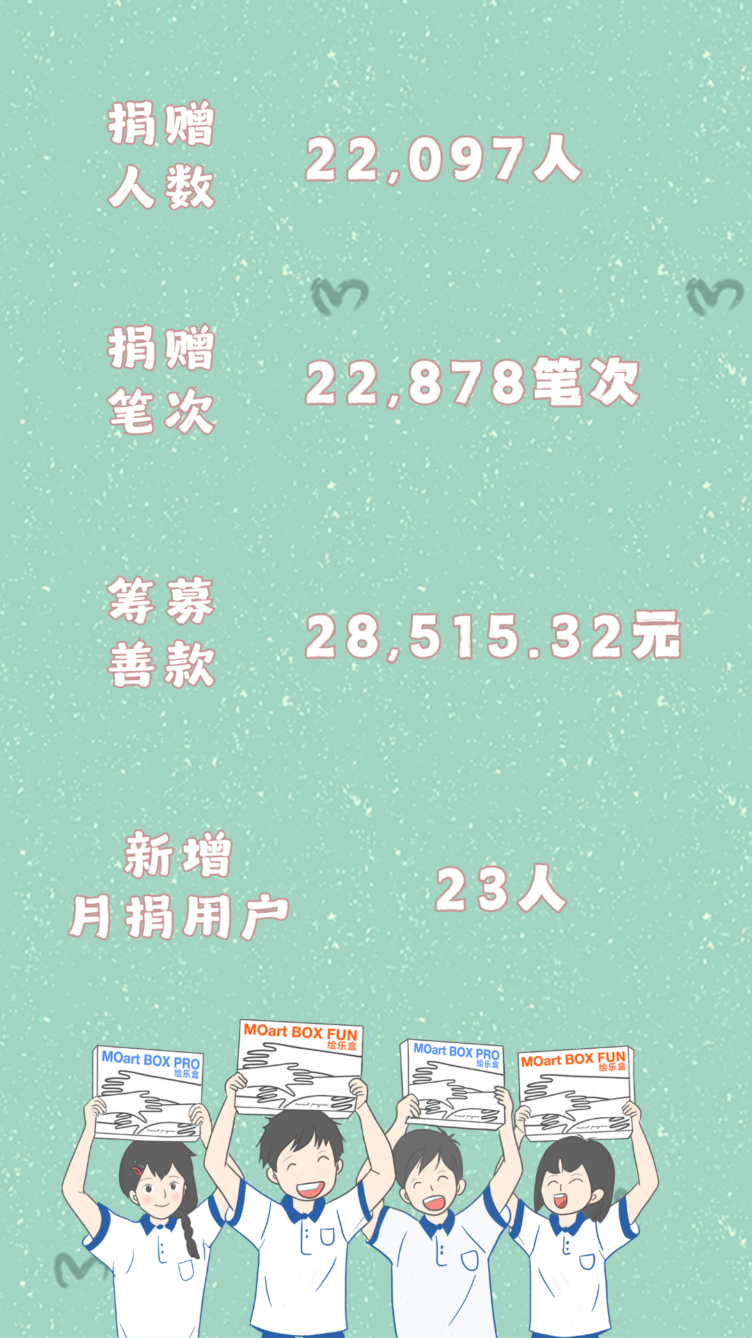 10月,恤孤助学会MOart Program以“步步播种绘乐梦,乡野绽放美育花”为主题,在腾讯公益“一块走”小程序开启了为期一个月的线上捐步挑战。如今,这场汇聚了两万多名爱心人士善意的公益马拉松已抵达终点,感谢每一位同行者,是您用行走的每一步,让美育的种子在乡村校园扎根,为乡村学生的艺术梦想铺就前行之路。 公益马拉松活动虽暂告一段落, 但美育的旅程仍在延续。 MOart将继续陪伴孩子们 在艺术中寻找自我,在创作中看见未来。 感谢每一位为乡村孩子执笔多彩未来的伙伴, 期待下一程,我们继续与美同行! 撰稿:段文琦 编辑:段文琦 审核:林钧泽