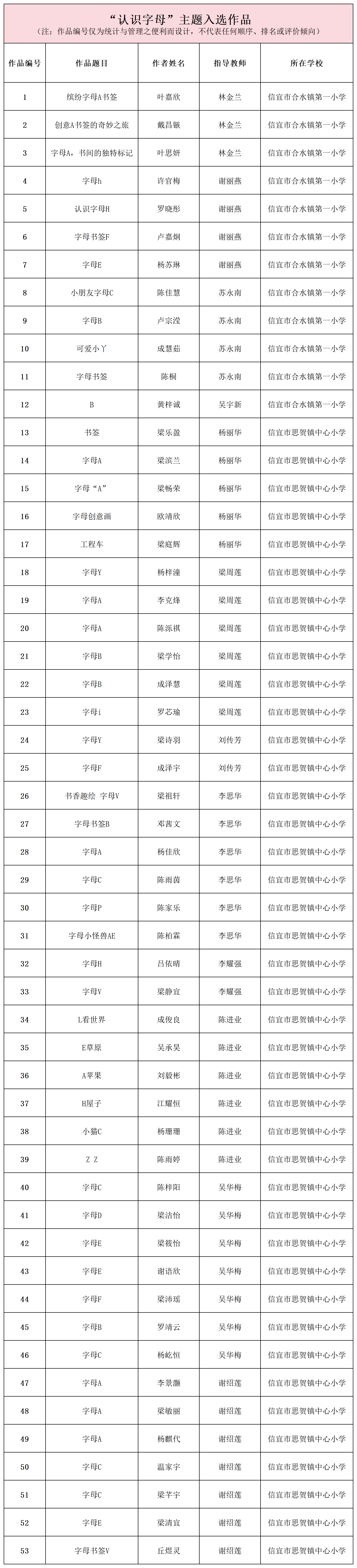 为鼓励学生在阅读中持续探索、积累与分享,10月,恤孤助学会GIALEN BOOK童学会乡村儿童阅读服务项目携手信宜市合水镇中心学校、思贺镇中心学校在合水镇第一小学、思贺镇中心小学,正式启动2025年“书香趣绘”主题创作大赛。 本次大赛设立两个主题单元:1-2年级学生围绕“认识字母”主题制作创意字母书签;3-6年级学生则以“好阅读”为主题,绘制B4尺寸手抄报。 在为期20天的创作时间中,孩子们以书为媒,以画为语,完成了一份份充满童趣与灵感的作品。11月26日,经过广东省作家协会会员、美术专业志愿者的首轮筛选,最终共有53份“认识字母”主题作品与135份“好阅读”主题作品成功进入投票环节! 现在,我们诚挚地邀请您,为这些充满创意的作品投出宝贵一票,共同见证乡村学生阅读学习路上的闪耀时刻! 投票时间 2025年11月28日17:00 至 12月8日23:59 投票规则 1、每日可投:一个微信账号每个主题每天可投10票,票数可自主分配给各主题下的1-10份作品。 2、公平守护:系统实时监测数据,如有刷票行为,将直接取消参评资格。 3、转发助力:欢迎转发分享,让更多人看见孩子们的创作才华! 评奖规则 1、两个主题单元将分别进行评奖。 (1)“认识字母”主题单元:网络票数排名1-10名的作品获“优秀奖”,11-20名的作品获“创意奖”。 (2)“好阅读”主题单元:网络票数排名1-10名的作品获“一等奖”,11-20名的作品获“二等奖”,21-40名的作品获“三等奖”。 2、奖项激励: 所有获奖学生将按参与单元与获奖等级,获得对应证书与奖品;其指导教师将获得荣誉证书及奖品。 联系我们 关于2025年GIALEN BOOK童学会“书香趣绘”主题创作大赛,如有任何疑问,请联系恤孤助学会爱童行事业部(电话/微信:138 2210 6464;邮箱:gzoes@vip.163.com)。 投票入口已开启,请点击下方对应主题小程序,为您喜爱的作品加油助力吧! 撰稿:段文琦 编辑:段文琦 审核:林钧泽