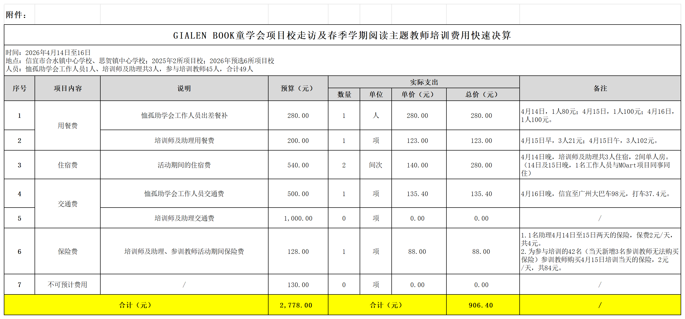 春风送暖,书香致远。2026年4月14日至16日,广东公益恤孤助学促进会(下称本会)联合信宜市合水镇中心学校、信宜市思贺镇中心学校,在广州娇兰佳人实业投资有限公司、广州星河创想文化发展有限公司的支持下,顺利开展GIALEN BOOK童学会项目校走访及春季学期阅读主题教师培训。本次活动通过实地走访,与项目校相关方进行面对面交流,了解阅读工作的开展情况及春季学期计划;同时为项目校教师提供阅读教学理念与AI技术应用指导,进一步提升教师阅读教学能力,推动项目校学生阅读习惯的养成。 回访2025项目校 让阅读资源持续落地生花 项目团队对合水镇第一小学、思贺中心小学这2所2025年项目校开展回访工作,与项目校领导、负责阅读工作的教师及学生代表进行面对面交流,了解各项目校春季学期阅读资源配置及阅读活动开展的具体情况。同时,双方共同探讨2026年春季学期各项目校的阅读工作推进计划,明确如何在后续工作中更有效地使用现有阅读资源。 此外,项目团队还在这两所2025年项目校各观摩了一节阅读课。思贺中心小学的阅读课以一段优美舒缓的轻音乐开启,老师与学生们一起沉浸在墨香四溢的文字中,探索着书籍里的奇妙世界。合水镇第一小学的阅读课上,老师先引导学生进行了10分钟的静心阅读,随后让大家记录下读到的好词好句与个人感想,并与小组成员展开讨论分享;课堂尾声,老师还向学生介绍并推荐了一本优质书籍。 项目团队工作人员认真观察师生互动,详细记录课堂中阅读资源的使用方式与学生的参与情况。课后,项目团队与阅读课教师就课堂情况展开交流,既肯定了课堂呈现的亮点,鼓励教师将教学经验整理成文字资料供其他项目校教师借鉴学习;也围绕如何进一步激发学生阅读兴趣、拓展阅读深度等方面提出了建议。通过此次对项目校阅读课堂的观摩,团队直观感受到阅读资源在项目校落地生根,对学生阅读习惯的培养和课堂教学均产生了诸多积极影响。 凝心聚力 共话乡村阅读新计划 为进一步统筹推进项目在信宜市合水镇、思贺镇落地,项目团队与合水镇、思贺镇中心学校领导开展座谈交流。双方复盘2025年GIALEN BOOK童学会项目工作开展情况,梳理项目实施过程中的经验做法与优化方向,同时围绕2026年项目校选定、资源配置、活动开展、教师成长等项目落地内容,进行了沟通与讨论,为后续项目推进打下坚实的基础。 走访2026年预选项目校 了解阅读实际现状 为确保2026年GIALEN BOOK童学会阅读资源的有效落地,项目团队在各镇中心学校对接人的带领下,先后前往思贺镇大坪小学、思贺镇大榔小学、思贺镇横岗小学、合水镇中心小学、合水镇杨梅小学、合水镇石硖小学6所预选项目校。每到一所学校,团队深入了解学校阅读室配置、图书存量、借阅情况、阅读氛围及阅读工作开展现状,并认真记录学校在图书资源匮乏、阅读工作推进困难、教师缺乏学生阅读指导方法等方面的实际需求,为后续项目落地执行提供清晰思路。 AI助力阅读 点亮教学新思路 4月15日,春季阅读主题教师培训在信宜市思贺中心小学顺利开展,来自信宜市2025年项目校的45名语文教师齐聚一堂,开启一场兼具创新与实用的阅读教学学习之旅。 本次培训邀请广东省作家协会成员李楚冰老师担任导师,围绕“如何有效运用AI工具,在实际教学中为学生的阅读提供指导与创作支持”这一主题展开。培训现场,李老师通过案例演示,向教师们介绍各个AI工具的核心功能及五大应用场景,并分各年级给出不同角度的教学实操指引。例如,四年级学生对二十四节气往往较为陌生,理解起来存在困难。此时,老师们可借助AI工具“文心”生成一幅描绘小满节气的场景图,让学生通过视觉直观感知该节气的具体样貌;学生基于图片完成描述后,老师再进行补充与纠正,从而达到事半功倍的教学效果。 培训现场氛围热烈,项目校教师们认真聆听、积极互动,纷纷表示收获满满。本次培训不仅提升了项目校教师的阅读教学技能,更明确了后续实践方向——参训教师将在春季学期完成至少1次AI指导阅读与创作课堂实践,并提交反馈,让培训成果真正落地课堂。 GIALEN BOOK童学会 与你同行共成长 GIALEN BOOK童学会乡村儿童阅读服务项目,寓意与乡村儿童犹如“同学”般,是共同成长的伙伴。从2023年项目启动,到2026年持续走访推进阅读工作开展,项目扎根乡村,守护乡村孩子的阅读梦。 未来,本会将继续开展乡村阅读服务活动,优化资源投放,创新活动形式,让书香飘满乡村校园,让每一位乡村孩子都能在阅读中看见更广阔的世界。 致谢(以下排名不分先后) 诚挚感谢信宜市合水镇中心学校、信宜市思贺镇中心学校作为活动主办方支持项目、活动的顺利开展。 诚挚感谢信宜市合水镇第一小学、信宜市思贺中心小学、信宜市合水镇中心小学、信宜市合水镇杨梅小学、信宜市合水镇石硖小学、信宜市思贺镇大坪小学、信宜市思贺镇大榔小学、信宜市思贺镇横岗小学作为活动承办方,协调培训场地及组织走访安排。 诚挚感谢广州娇兰佳人实业有限公司为项目、活动提供资金、资源支持。 诚挚感谢广东省作家协会会员李楚冰为本次活动提供技术支持。 附件:GIALEN BOOK童学会项目校走访及春季学期阅读主题教师培训费用快速决算 广东公益恤孤助学促进会 2026年4月21日