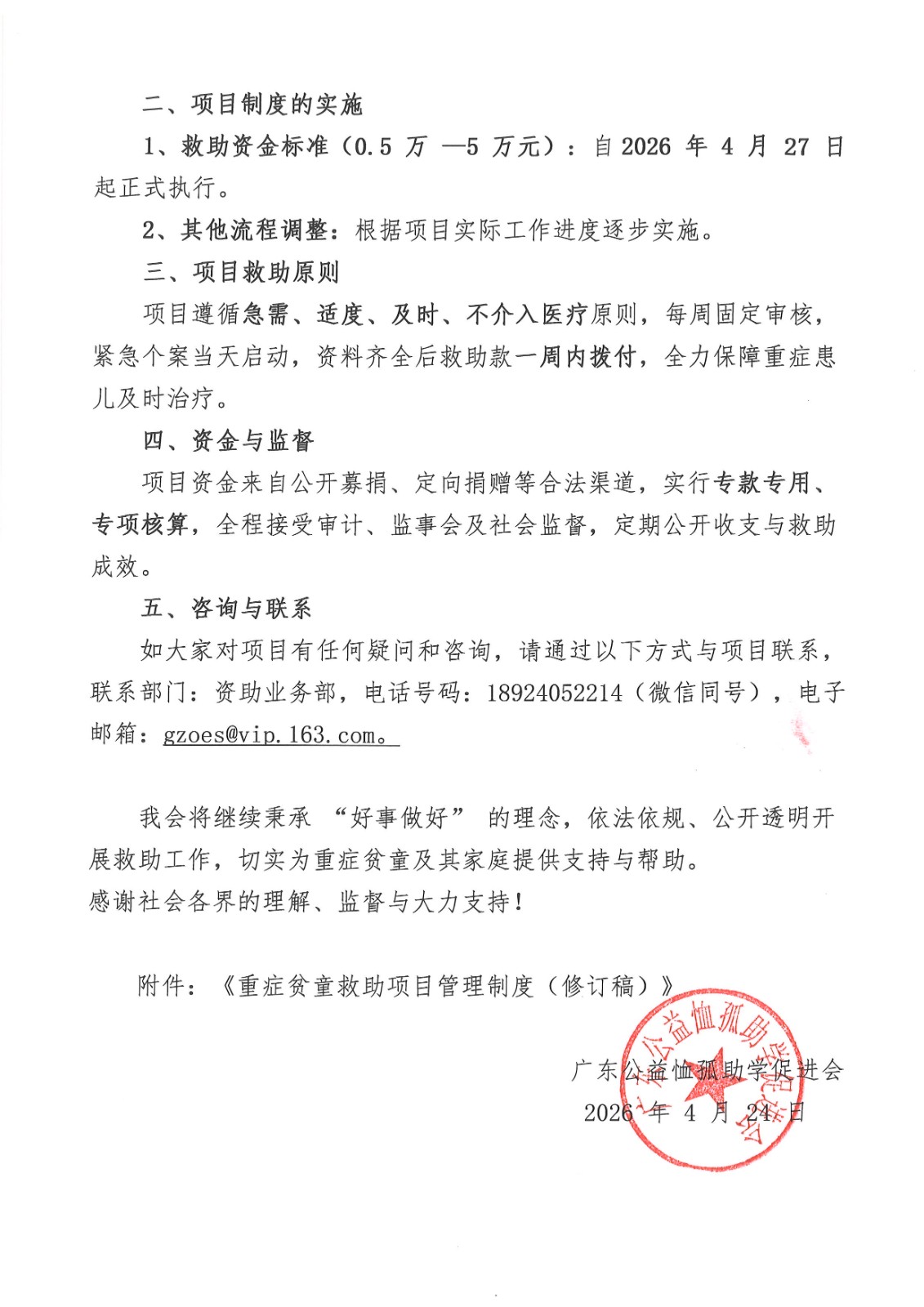关于实行《重症贫童救助项目管理制度(修订稿)》 的公示说明