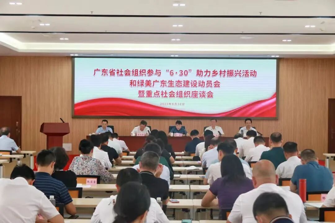 6月16日,广东省社会组织参与“6·30”助力乡村振兴活动和绿美广东生态建设动员会暨重点社会组织座谈会在广州召开,贯彻落实省委、省政府工作部署,广泛动员全省社会组织积极参与“6·30”活动,为全省乡村振兴和绿美广东生态建设贡献社会组织力量。省民政厅厅长张晨出席会议并讲话。省民政厅副厅长、省社会组织管理局局长庄侃,省农业农村厅督查专员李冠强,省林业局党组成员、副局长吴晓谋,省社会组织党委专职副书记周惠明分别对社会组织参与活动作部署要求。来自全省各地60家社会组织代表,21个地级以上市民政局有关负责同志参加会议,恤孤助学会作为倡导单位之一受邀参加了当天的活动。