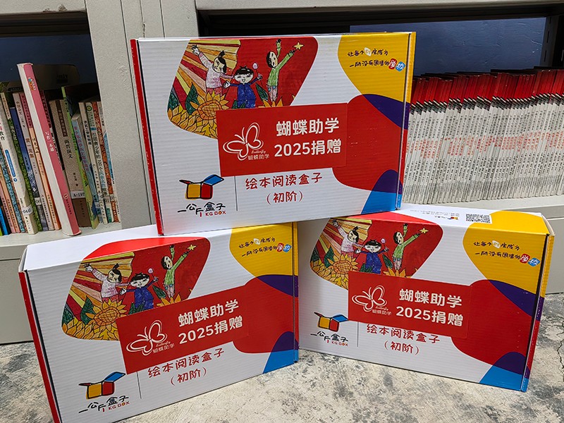 2025年3月,蝴蝶助学“阅动计划”项目,为从江县停洞镇中心小学捐赠19个班级"蝴蝶助学公益图书角",首批投放书架19个、图书2000册以及配套阅读物资一批,捐赠价值5.3万余元,将惠及全校学生1300多人。