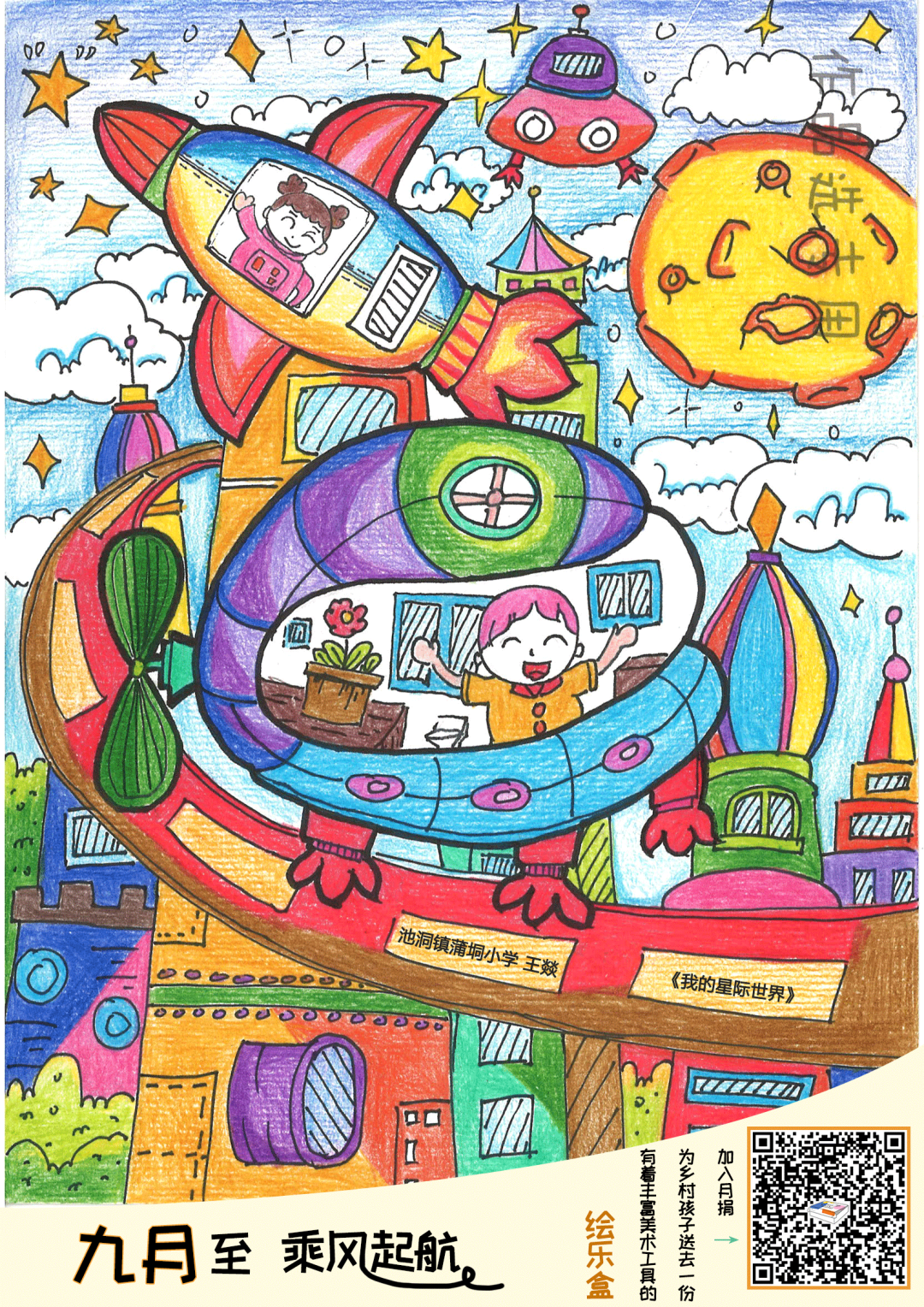 秋风起把夏天收拾好愿接下来每一天万事顺意,好运常在本月月签画作选自MOart Program 2023年主题作品选优秀作品——《我的星际世界》。作品创意:我希望以后能翱翔宇宙!作者:池洞镇蒲垌小学 王燚指导老师:陈月泓MOart诚挚邀请您一块为乡村学生的美术梦想助力,加入月捐给乡村学生送去充满乐趣的绘乐盒,支持热爱画画的乡村学生!