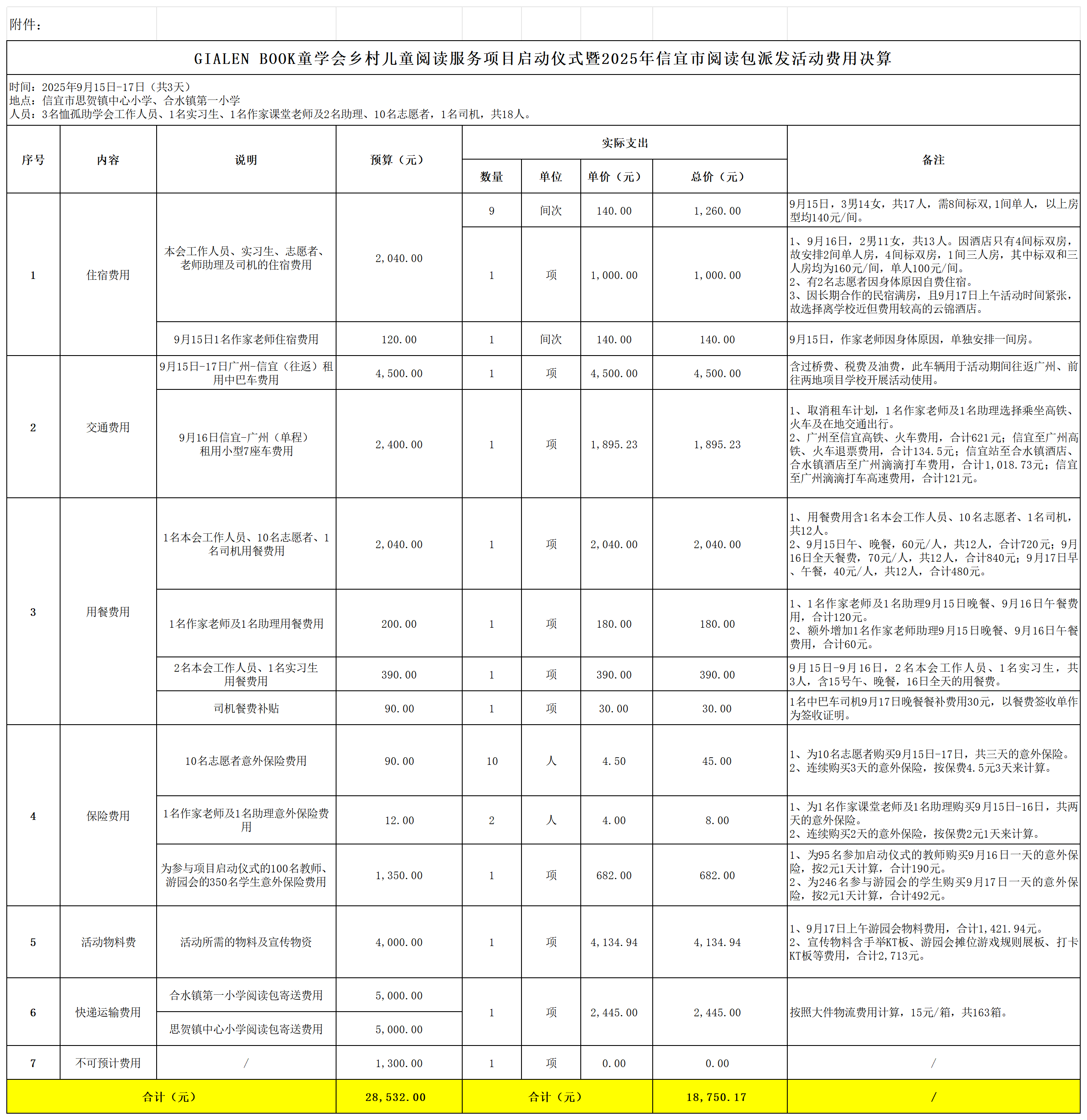一、活动概况 广东公益恤孤助学促进会(以下简称本会)GIALEN BOOK童学会乡村儿童阅读服务项目(以下简称项目),通过向乡村儿童提供阅读资源,改善乡村学校的阅读环境,培养乡村儿童的阅读习惯和兴趣,促进乡村儿童的全面发展和成长。2025年项目继续为信宜市合水镇、思贺镇2,197名学生送去“好好”阅读包及配套的班级读物,并为92名乡村教师开展“作家课堂”活动,246名学生开展阅读主题游园会活动。 活动由本会与信宜市合水镇中心学校、思贺镇中心学校联合主办,广州娇兰佳人化妆品连锁有限公司和广州星河创想文化发展有限公司支持,合水镇第一小学、思贺镇中心小学提供场地支持。活动实现多方联动,共同聚力开展。 二、活动内容 (一)项目启动仪式和“作家课堂”活动 9月16日上午,GIALEN BOOK童学会启动仪式在广东省“书香校园”合水镇第一小学举行,来自合水镇、思贺镇的中心学校领导和92位项目学校教师到场参与,共同见证项目的正式启动。 随后由国家一级作家赵小敏老师为两所项目校92名教师开展“作家课堂”活动,通过主题“阅读开启未来”,让乡村教师掌握正确的阅读方法,将所学应用于实际教学中。 (二)“好好”阅读包及班级读物派发 2025年秋季学期,2,197份“好好”阅读包及配套班级读物在9月上旬已运送至项目学校。 9月16日-17日,本会工作人员和项目校领导出席派发活动,来到信宜市合水镇第一小学、思贺镇中心小学为2,197名学生派发“好好”阅读包,并安排班级代表领取配套的班级读物,派发过程与学生交流阅读包内的书籍,鼓励其多读书,好读书。 (三)阅读主题游园会 9月17日上午在思贺镇中心小学举办阅读主题游园会,246名三、四年级学生参与活动。活动旨在通过设置阅读主题摊位游戏,让“阅读”与“互动”融合,让阅读从静态的文字吸收变成动态的沉浸式体验,同时帮助孩子们在体验中加深对内容的理解与记忆,实现“在玩中读,在读中悟”。 三、活动成效 (一)“作家课堂”活动教师反馈 “作家课堂”是一场提升乡村教师阅读技巧及教学能力的活动,由国家一级作家赵小敏老师担任主讲,围绕“阅读开启未来”,生动形象地分享如何阅读的方法,鼓励教师设计和开展更加符合学生需求的阅读活动,增强学生的阅读兴趣,延续学生的阅读习惯。 “作为语文老师,有时很苦恼如何让学生爱上阅读,听完赵老师的课,我深受启发,也对回到班级开展工作更有信心了”。活动的开展,让乡村教师在阅读教学方面获得启发,同时增强乡村教师对阅读教学的信心,鼓励教师们持续投身到阅读推广工作中。 (二)阅读主题游园会学生反馈 9月17日,本会工作人员到思贺镇中心小学为246名乡村学生举办阅读主题游园会。只见每个摊位前站满了跃跃欲试的学生们,有的在一旁学习通关经验,有的站在规则展架前蠢蠢欲动,有的捋起袖子正勇闯摊位游戏.... “踢足球是我的拿手运动,看我的飞毛腿”“我最喜欢活印刷摊位,让我了解文字是如何拓印到纸上,原来阅读活动也可以很有趣”。学生们叽叽喳喳地分享着参加阅读主题游园会的感受。 四、总结及建议 (一)持续跟进学校需配合事宜,加强与学校的沟通、对接。 活动的顺利开展,离不开各方的沟通与协作。在活动前期筹备阶段,应进一步确切落实活动内容,以确保活动现场的有序推进。改进建议如下: 1.确定项目校对接人,跟进学校需配合事宜。 活动筹备时,与活动地对接人明确活动流程、内容及需配合事宜,避免现场重复介绍活动及调整工作人员。 2.根据活动内容及开展时间,挑选合适场地。 活动筹备时,应与学校充分了解活动场地的情况,结合天气原因挑选适宜的活动场地,如下午室外太阳直晒,不宜在无遮挡的室外开展时长较长的活动,例如阅读包派发活动。 (二)细化人员分工及调配工作,做到责任到人。 此次活动含多个子活动板块,每个子活动均需工作人员与志愿者相互合作,尽管筹备前期考虑到活动现场的分工,但忽视了活动开展前筹备工作的具体分工,导致现场混乱,出现返工情况。改进建议如下: 1.人员分工表可视化。 活动前培训会除了介绍现场志愿者的人员安排,还需考虑活动开始前筹备、布置的流程及工作分工,如按活动板块细化分工表并让负责人员清晰工作的具体内容。 2.设置工作板块负责人,责任到人。 根据子活动内容,工作板块可划分物资管理组、活动机动组等,并设置工作板块负责人,在活动布场由工作板块负责人对接、落实相应的工作,若出现需要解决的事宜,由板块对接人与活动负责人直接沟通。 (三)提前做好拍摄计划,视现场情况及时调整。 本次拍摄及采访工作与计划基本一致,但在素材采集时,受活动场地、天气等因素,无法从素材中获取想要体现的内容,与预期效果有出入。改进建议如下: 1.明确拍摄需求及构图。 活动前培训会,应与负责拍摄的志愿者沟通素材采集计划、照片构图等,明确各子活动的素材呈现效果,确保实际拍摄素材与预期基本一致。 2.及时查看素材,调整拍摄方式。 例如拍摄派发活动大合照时,可在拍摄后及时复查照片,若未达预期,可及时调整拍摄方式,增强素材的利用率。 致谢(以下排名不分先后): 诚挚感谢信宜市合水镇中心学校、信宜市思贺镇中心学校作为主办方支持项目、活动的顺利开展。 诚挚感谢广州娇兰佳人化妆品连锁有限公司为项目、活动提