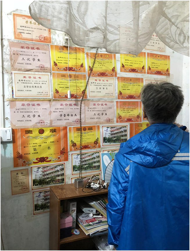 看着墙壁上贴着满满的奖状,再看看这些孩子的生活现状,要实现脱贫攻坚和全面小康,除了政府加大投入外,还要靠社会支持和帮助那些生活中阳光无法照射到的角落里的人,让她们过上有保障的生活,这样才能在人生的起跑线上获得公平的机会去接受教育和生活,再通过自己的努力来改变一生的命运。