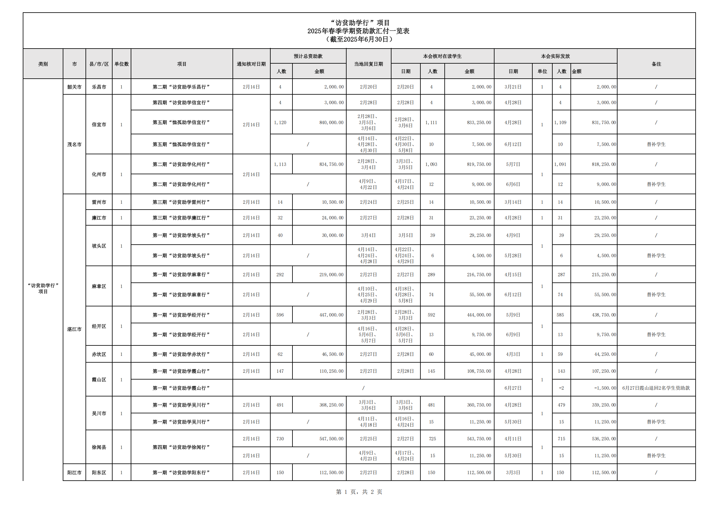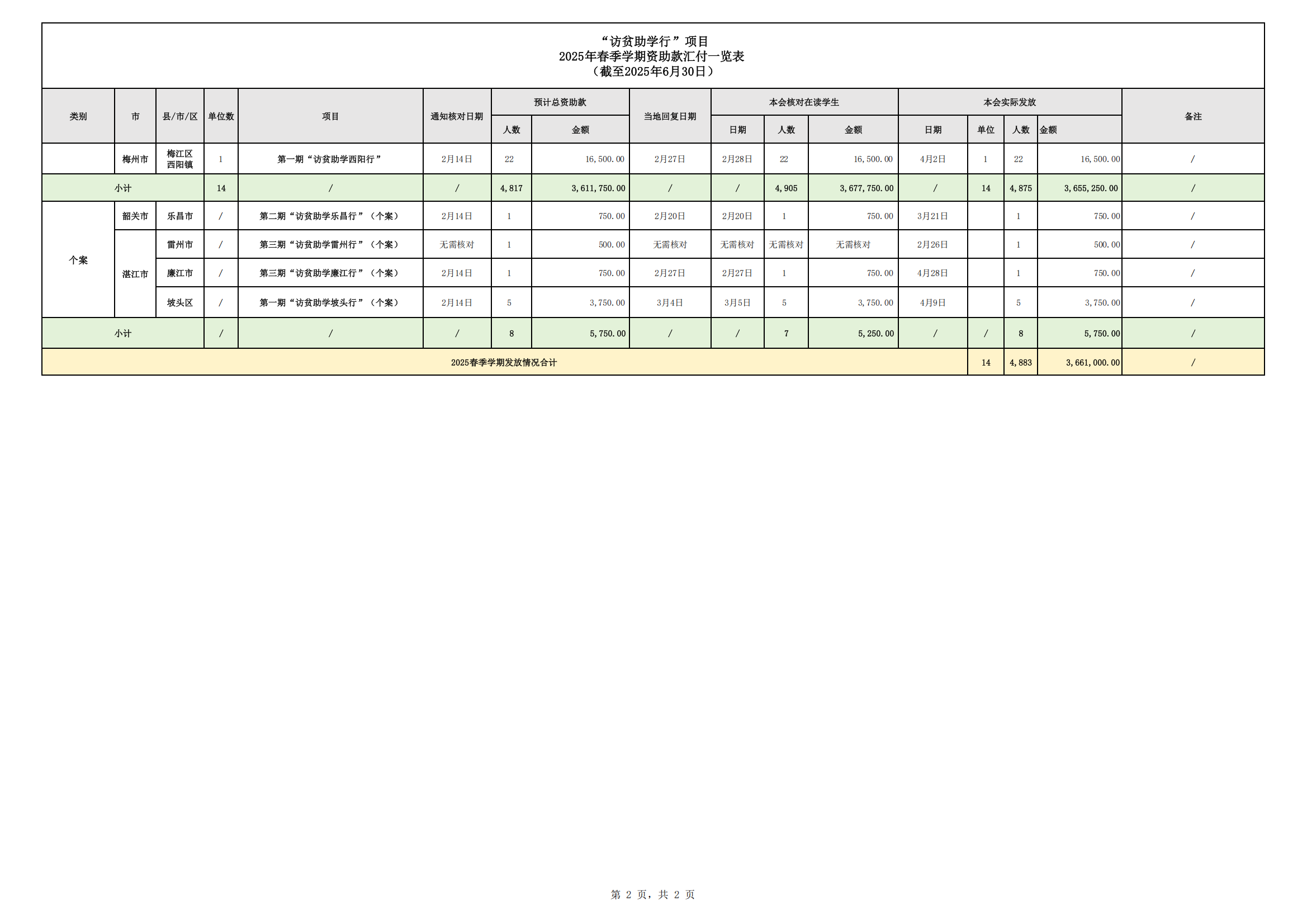 “访贫助学行”项目2025年春季学期资助款汇付一览表(截至2025年6月30日).pdf