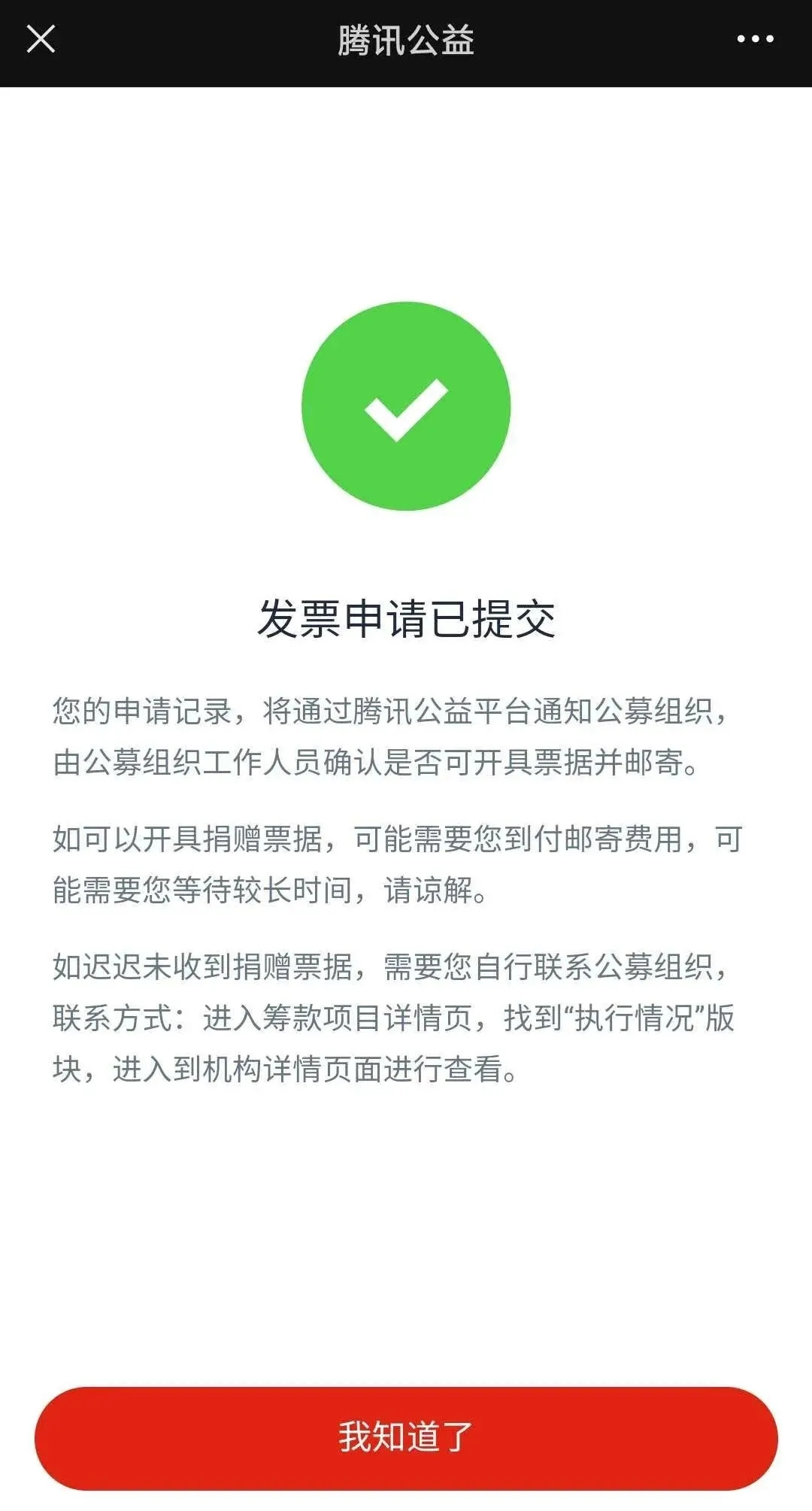 另我会按财政票据核销要求,以单位名称为发票抬头申请开具发票的,需有捐赠协议才予以核销;因此发票申请提交成功后,我会工作人员将会根据后台申请信息与之联系,补签捐赠协议和在确认收到捐赠款且收到捐款开票申请的5个工作日内为您开具捐赠收据,捐赠电子票据将以短信方式发送至预留手机号,请耐心等候,感谢您的支持!
