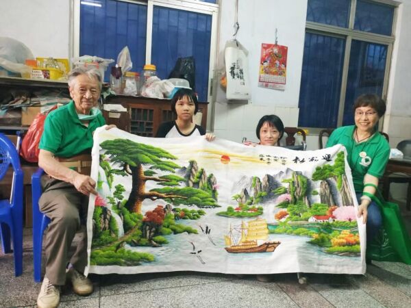 “爱出者爱返,福往者福来”,前有获得救助的病童返还救助善款,今有受助学生妈妈捐赠心血作品用于义拍筹款。在41件义拍品中,有一件特别的十字绣作品《迎客松》,此件拍品是一位受助学生菲菲(化名)的母亲花四年时间亲手绣的十字绣作品。菲菲是2013年恤孤助学会资助的一名学生,三岁时,菲菲的妈妈因为患病造成全身瘫痪,只能坐在轮椅上,失去了劳动能力。今年4月,恤孤助学会第三期访贫助学廉江行家访中,老会长王颂汤和志愿者去到她家,为了感谢社会各界的帮助和关爱,菲菲妈妈向王会长赠送了这幅饱含情意的十字绣作品,希望自己的作品可以为恤孤会出点微力,感恩大家的关爱。