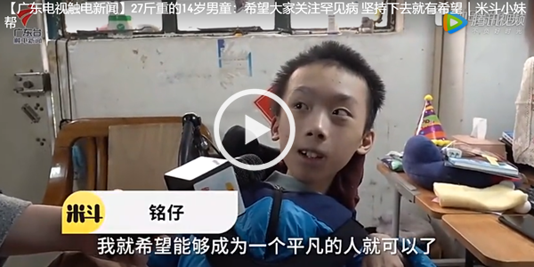 【广东电视触电新闻】27斤重的14岁男童:希望大家关注罕见病 坚持下去就有希望