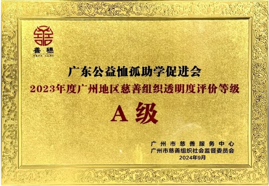恤孤助学会连续6年获得广州地区慈善组织透明度评价A级