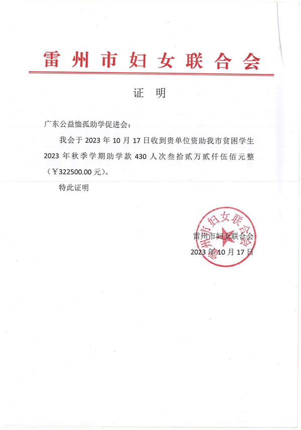 广东公益恤孤助学促进会(下称本会)2023年秋季学期发放3,768人次助学资助款共2,881,000.00元。